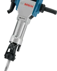 Abbruchhammer GSH 27 VC. Der stärkste Elektro-Abbruchhammer von Bosch. Hohe Schlagleistung durch 62 Joule Schlagenergie und 1000 Schläge pro Minute. Sehr geringe Vibrationen (nur 8,5 m/s²) dank der entkoppelten Handgriffe und dem vibrationsreduzierten Schlagwerk für eine längere Einschaltzeit pro Tag. Sehr lange Lebensdauer dank hochwertiger Komponenten aus Aluminium und Stahl. Optimale Handhabung: Ergonomische Handgriffe mit Softgrip und niedriger Geräteschwerpunkt für optimale Handhabung. Anti-Abrutsch-Oberfläche verhindert das Umfallen des Gerätes.