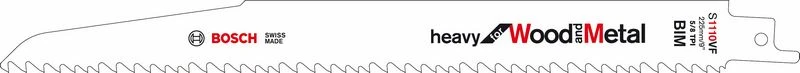 Säbelsägeblatt S 1110 VF. Heavy for Wood and Metal. Werkstoff: BIM. Zahnausführung: Spezielle Varioverzahnung für Holz. Einsatzbereiche: Für Holz mit Nägeln/Metall (kleiner als 175 mm Stärke), für Holz-, Spanplatten (kleiner als 175 mm Stärke), für Kunststoffe: Rohre und Profile (kleiner als 175 mm Stärke), für GFK/Epoxy massiv (kleiner als 175 mm Stärke), für Wandausschnitte: Holz und Metall (kleiner als 175 mm Stärke). Für Rettungs-/Abbrucharbeiten. Inhalt der Verkaufsverpackung: 5 Stück.