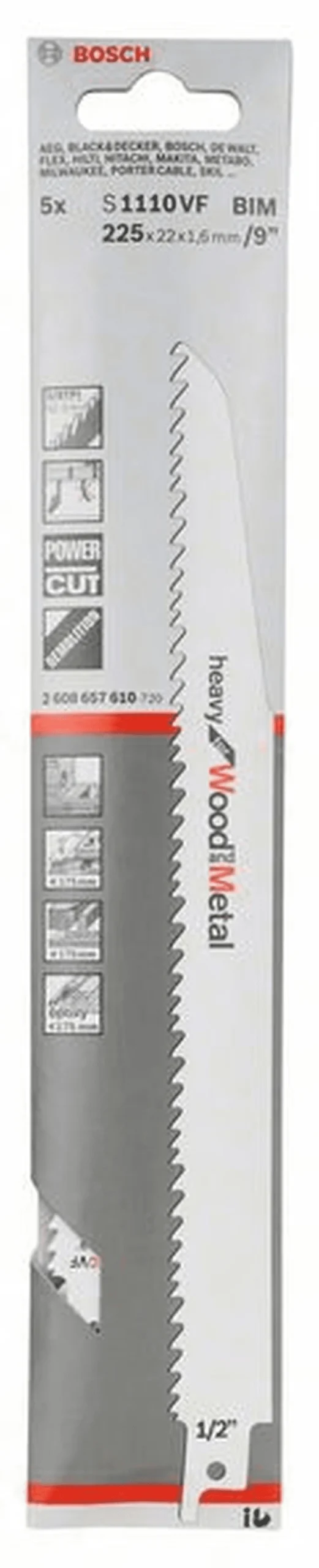 BOSCH Professional Säbelsägeblatt S 1110 VF, Heavy for Wood and Metal, 5er-Pack 2608657610