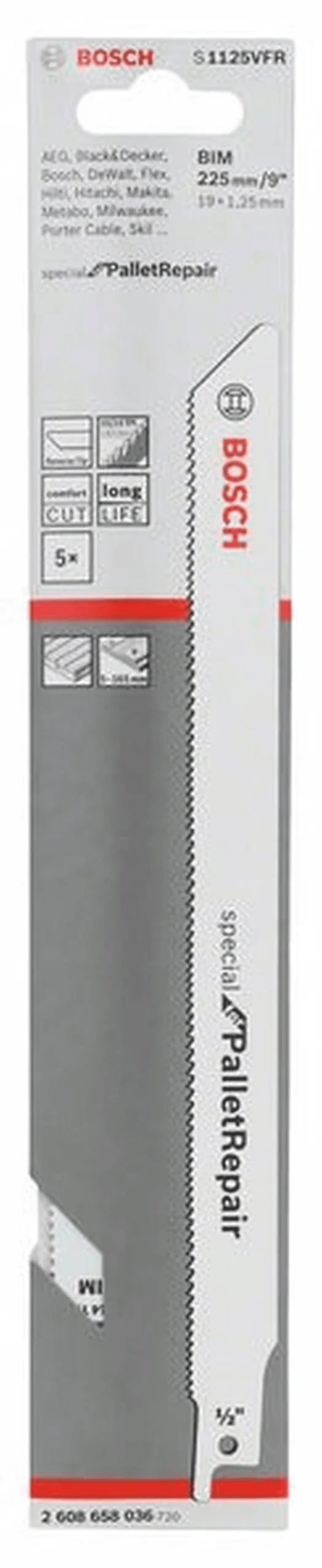 BOSCH Professional Säbelsägeblatt S 1125 VFR, Special for Pallet Repair, 5er-Pack 2608658036