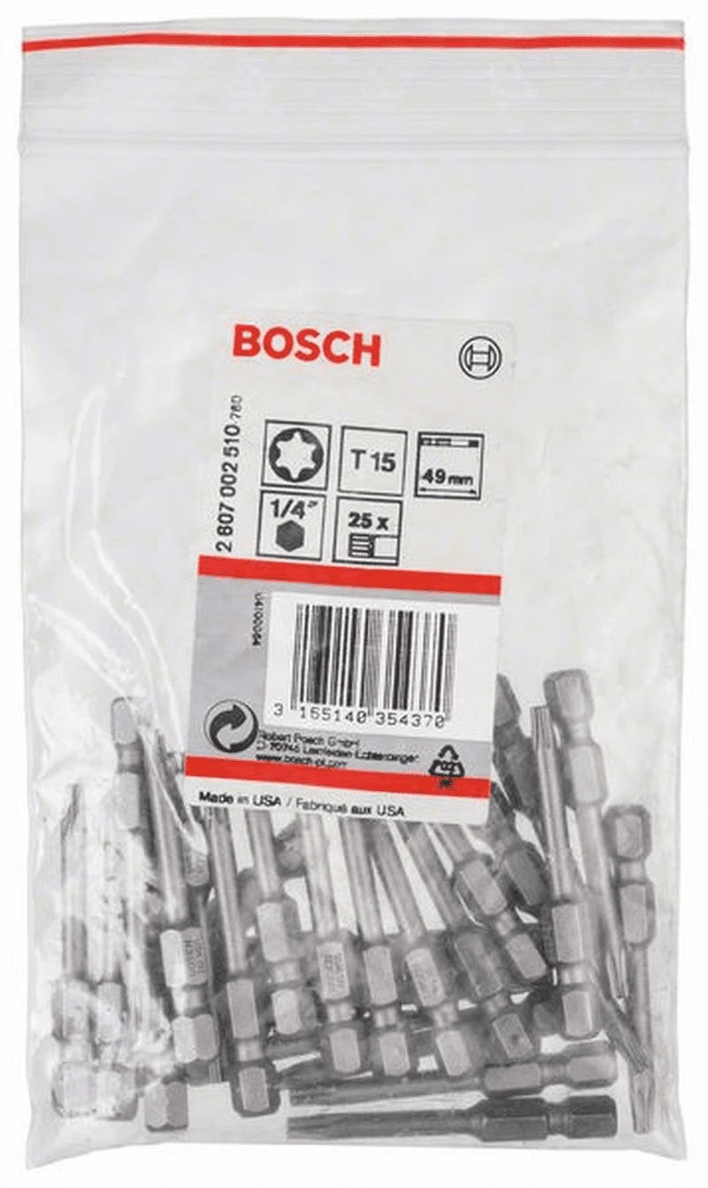 BOSCH Professional Schrauberbit Extra-Hart, T15, 49 mm, 25er-Pack 2607002510