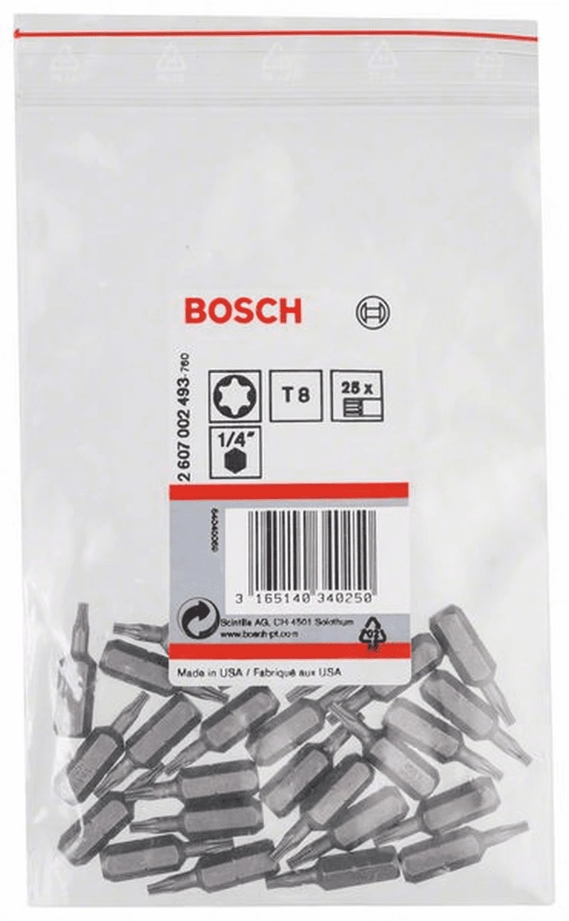 BOSCH Professional Schrauberbit Extra-Hart, T8, 25 mm, 25er-Pack 2607002493