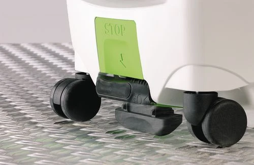 • Sicherer Stand – die Feststellbremse hält die Absaugmobile fest am Platz
