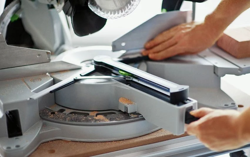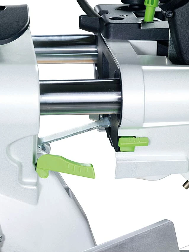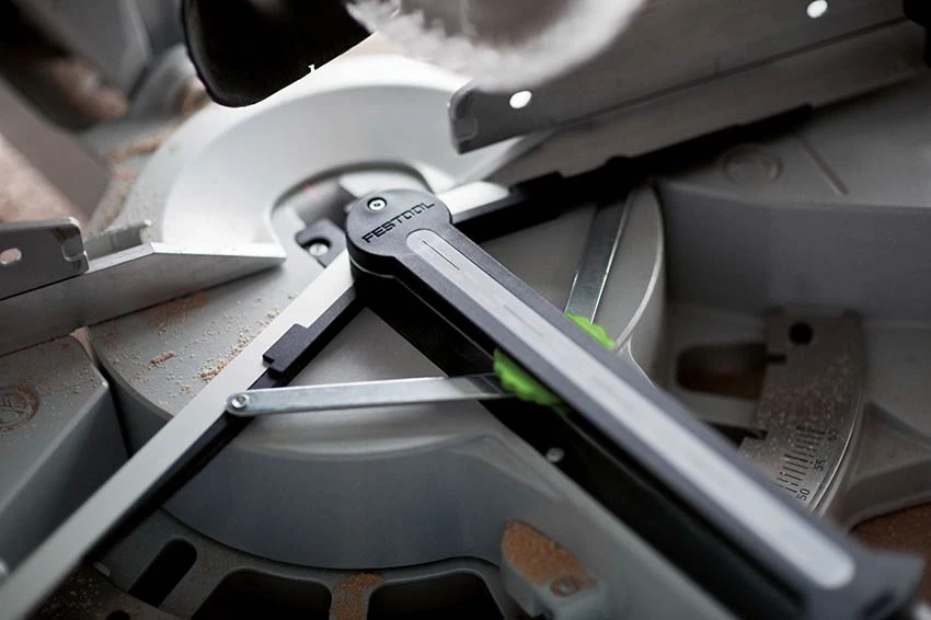 • Vorne bedienbare Feineinstellung für millimetergenaue Einstellung des Sägeblattwinkels