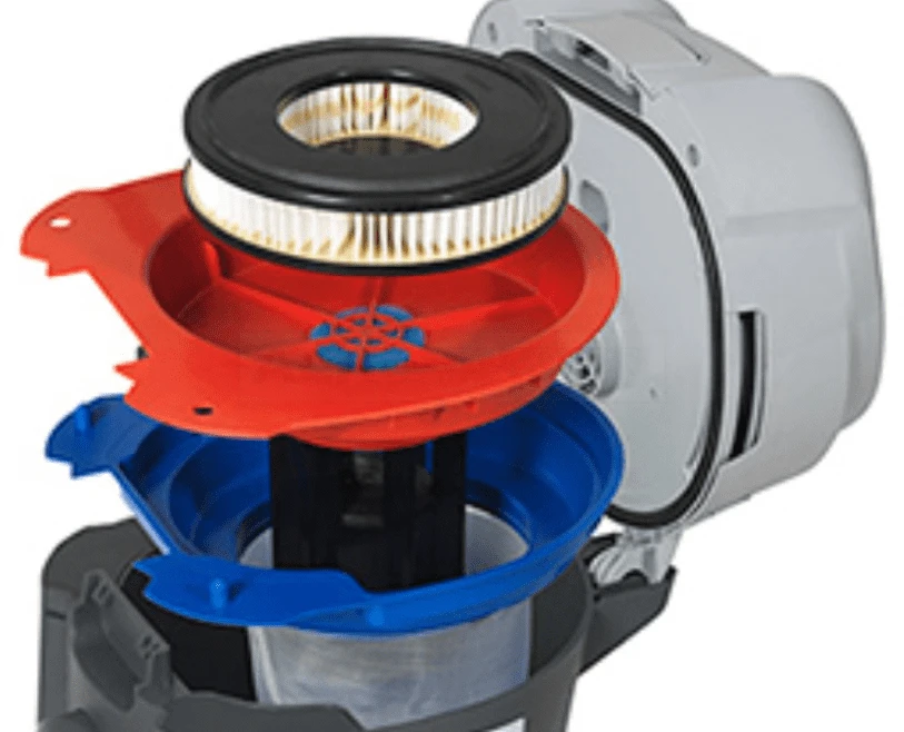 - Duales Filtersystem, ohne Filterwechsel, geeignet für eine Nass, wie auch für die Trockenanwendung.